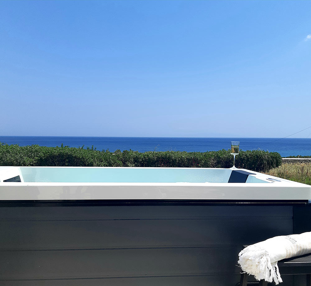 Deluxe double apartment is an ideal choice for 2 people who want to live romantic holiday in Paros. With an area of 25 sq.m., all the equipment, tasteful décor, modern comforts and a private outdoor mini spa with unlimited sea view, the elegant apartment offers all the necessary conditions for relax and unforgettable moments.