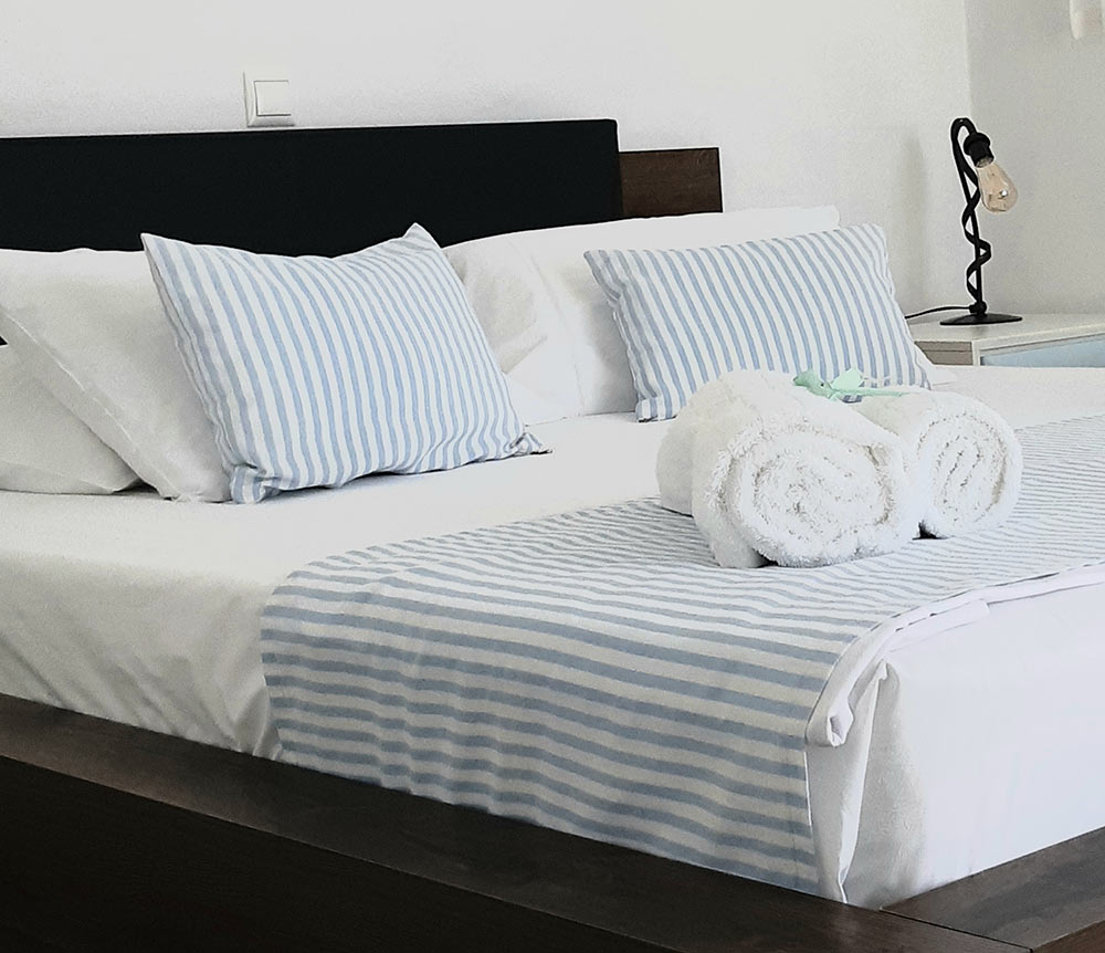 The apartment of 40.00 sq.m. has one bedroom with double bed, one living room with one comfortable sofa bed, fully equipped kitchen and bathroom. It is an ideal apartment for small families up to three and also for couples. The private veranda of 20sq.m. with exterior furniture and lounge beds is ideal for relaxation moments.